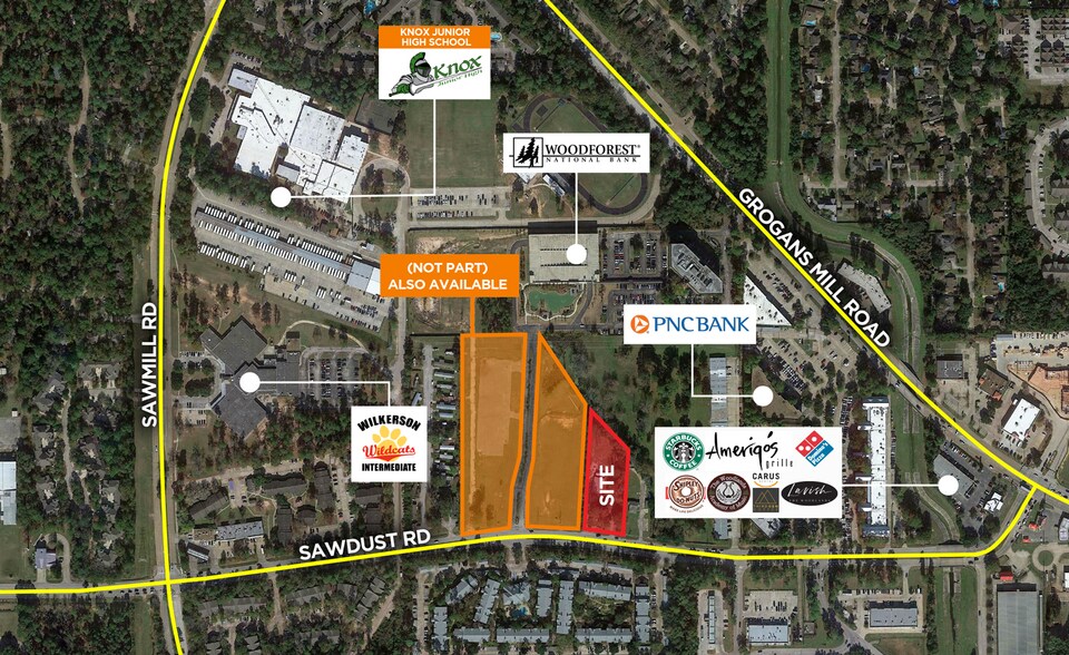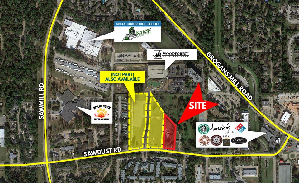- Situé à environ 1 600 pieds de Grogan's Mill Road, à 1,6 km de l'Interstate 45, à 3 km de la route à péage Hardy et à 4 km de la Grand Pkwy