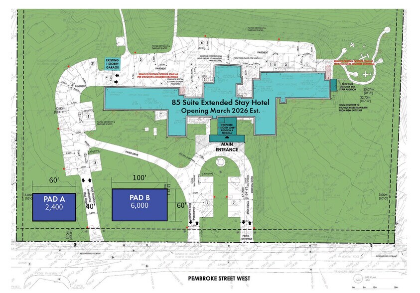 New Build PAD opportunities with Drive-Thru in Pembroke. Located in front of a newly renovated 85 Suite Extended Stay Hotel, slated to open in March of 2026. Across from West End Plaza, tenants include, No Frills, Dollarama, The Brick, Bar Burrito, Subway, and Peavy Mart. Located close to both Highway 41 and the Trans Canada Highway (Highway 17). *This is a new build and TMI has not yet been assessed.