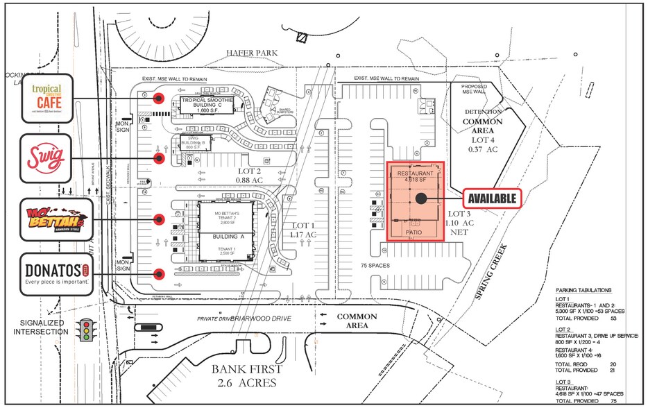 Tous ces restaurants ont environ 1 an et les données de fréquentation de Placer AI les placent parmi les plus performants. Le lot 1 est le plus précieux car il est adjacent à l'intersection signalée, d'où le plafond de 6,25. Tous les restaurants ont des drive-through