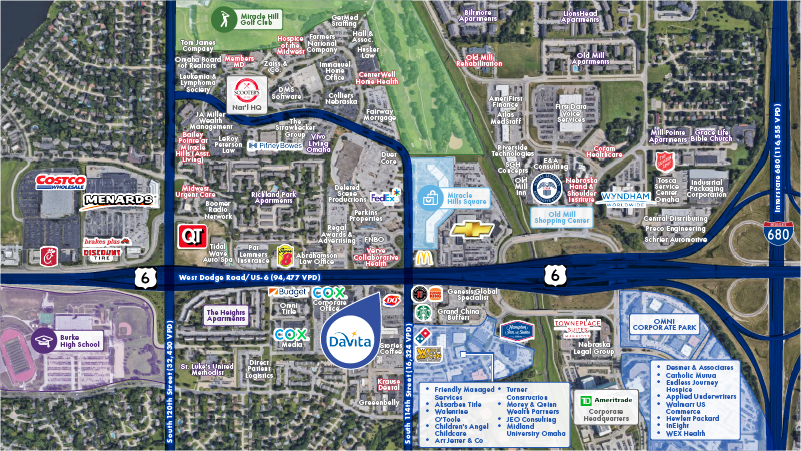 The Property consists of 0.51 acres and a one-story, 8,081-square-foot medical office building that was retrofit-to-suit in 2023 to the exact specifications of the Tenant. The Property is located just southwest of the intersection of West Dodge Road/US-6 (95k VPD) and South 114th Street (17k VPD). There are approximately 262,000 in population in a five-mile radius with an average household income in excess of $104,000 annually.