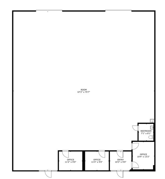 5,000 SF Flex Layout: Balanced mix of office (reception, 3 private offices, restroom) and open warehouse space designed for operational efficiency. 22’ clear ceiling height, one 12’ x 14’ drive-in bay door, and one 10’ x 10’ dock door.