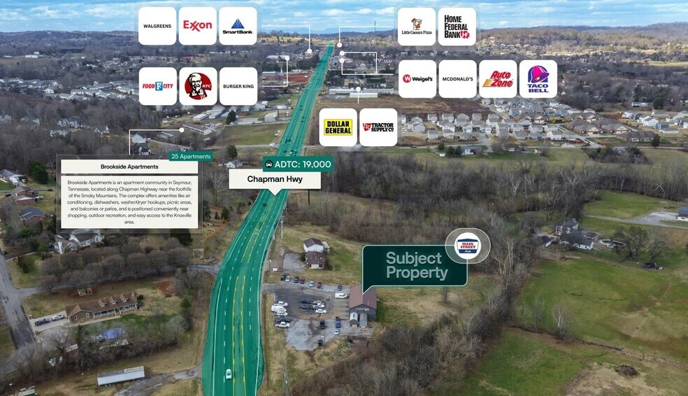 Surmount is pleased to present the exclusive listing for a Main Street Auto located at 11910 Chapman Highway, Seymour, TN 378 65. The site consists of roughly 3,086 rentable square feet of building space on an estimated 2.38-acre parcel of land. Main Street Auto subject to a 20-year Triple Net (NNN) lease, which commenced 2/20/2025. The current annual rent is $147,809 and has scheduled increases of 2.00% annually starting 3/1/2031.