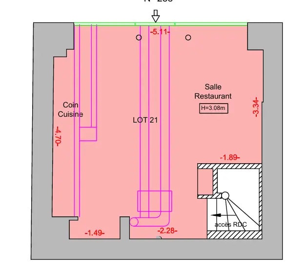 | Espace total disponible | 220 m² | Surface commerciale utile | 155 m² |