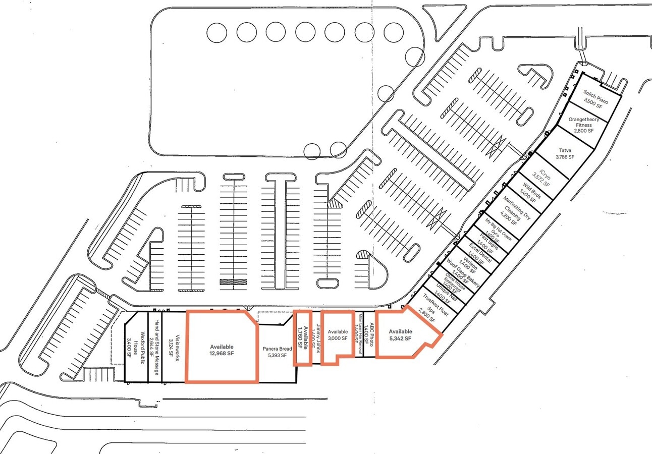 12,968 square foot former furniture store space available for lease. This space is in-line and adjacent to Visionworks and Panera Bread in Pine Tree Shoppes.