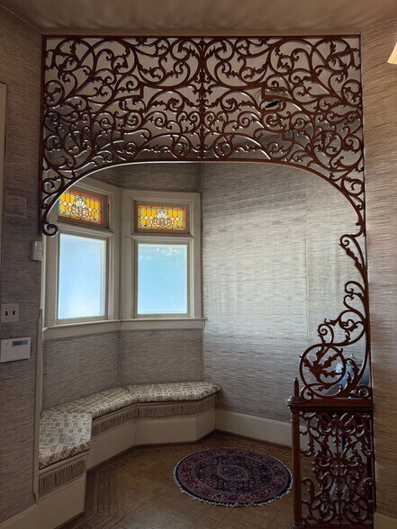 - Period extant elements include original hardwood floors, pickled wainscotting and doors, transoms, built-in cabinetry
