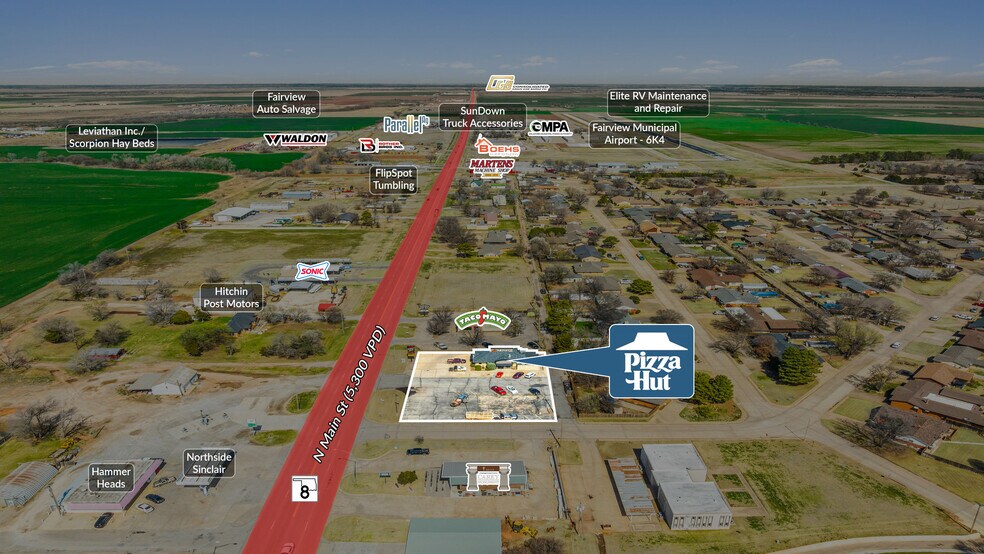 Sands Investment Group is pleased to exclusively offer for sale a 2,654 SF Pizza Hut located at 1202 N Main Street in Fairview, OK. The property is secured by a Triple Net (NNN) Lease with ~13 years of remaining term, offering zero landlord responsibilities and stable, passive income. The lease features 1.5% annual rent increases, providing a built-in hedge against inflation and consistent rental growth. This structure presents investors with a stable, long-term net lease opportunity backed by a nationally recognized brand.