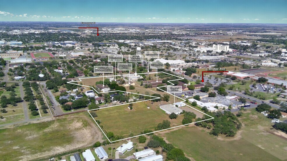 This academic and institutional site has 11 free-standing improvements on approximately 15 acres of land and is located at the corner of S Bridge Avenue and 10th Street in Weslaco. This site is in the heart of one of Weslaco's most established areas and is close to the hospital, multiple schools, nursing and other medical concepts. With over 67,000 square feet of high quality construction, this former academy is perfect for any institutional concept or investor.
