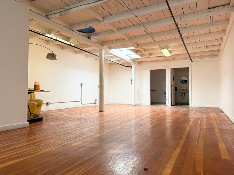 1228 Folsom propose un plan d'étage créatif et ouvert à un large éventail d'utilisateurs de bureaux. Le bâtiment est équipé d'un tout nouveau système de climatisation, de deux bureaux privés, de deux toilettes privées et d'un bureau d'observation « sky lounge » en prime au-dessus. Les utilisateurs profitent d'une kitchenette et d'un espace de détente situés à l'arrière de l'espace, tandis que la lumière naturelle entre par les fenêtres et les lucarnes.