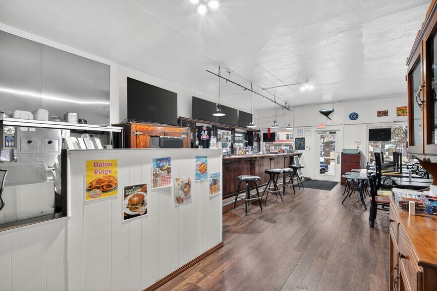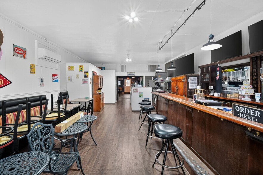 Are you ready to start or expand your business! This building is ready to go for whatever business your heart desires. The building has had many recent updates to include a new metal roof on the main building and the shed, all new plumbing & electrical, new front windows, stairs to the basement, mini splits to keep the temp appropriate for both sides of the building along with many more updates. The vintage bar has custom woodwork and a built in cooler. Many of the added features for the ice cream portion of this is reserved but can be purchased separately along with the business name " Sweet Scoops" through the owner. There is the open entry area, a bathroom in the middle then the back area that is currently used as a gaming room. The back door goes out to another seating area and shed for additional storage. The basement is very usable and has a lot of storage space as well. There are so many options for this building with a great location. Call to schedule you showing today!