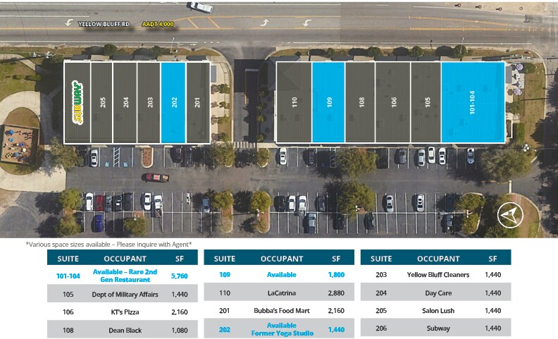 Yellow Bluff Square 12400 Yellow Bluff Rd Espace disponible | 134–836 m² | Local commercial | Jacksonville, FL 32226