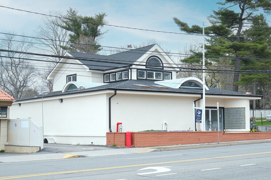 Prime Retail Property for Lease. Located on heavily travelled Jericho Tpke, in Huntington Station. This 0.34 acres property is directly across from Target and Chik-Fil-A and features two buildings on one lot. Former home to Selmer Pet Store, this building features a basement level and second floor loft office area. There is a detached 888 SF building with overhead door with ample parking and two means of egress on Jericho Tpke.