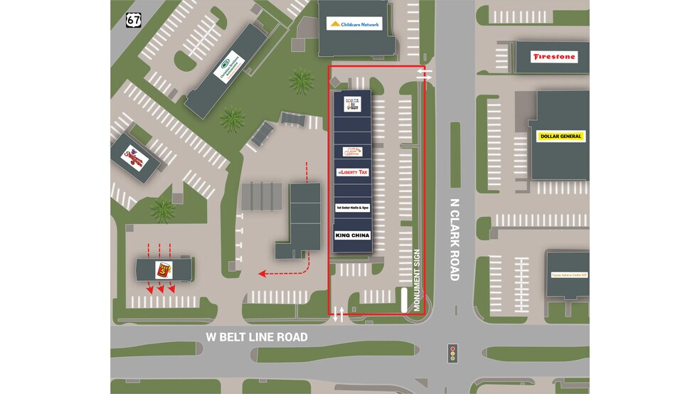 - Hard Corner Location w/ Multiple Entry Points – On Belt Line Rd/Clark St. w/ Easy Access to US Highway 67
