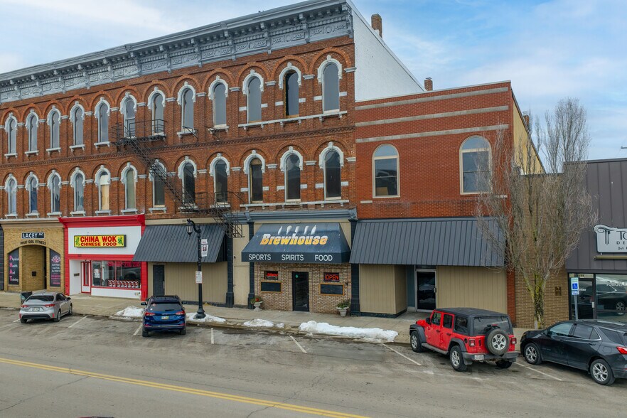 stone's throw from the square of New Philadelphia. This spacious property includes 3 buildings (123, 127 and 129) and offers 14,947 square feet on 3 levels. Extras include....4 pool tables, jukebox, 26 hi def TVs, and Ohio lottery. Expansive bar area seats 18 with 21 beer taps. Separate banquet room with exterior entrance directly from the square for additional income. Updates throughout include a new walk in freezer, updated tile kitchen floors, partial roof replacement, new grill, new bar flooring and so much more. Over 8,500 square feet located on the second and third floors offers excellent potential for expansion. 3 well maintained furnaces and air conditioning units for year round comfort. Private, rear parking area for staff with 10+/- parking spaces. 25 employees, all willing to stay and help you make this turn key operation a continued success. Easy access to the property on South Broadway, just minutes from State Route 250 and I77.