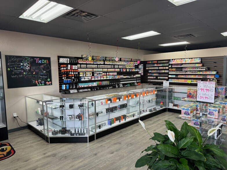 Former retail Smoke Shop with high security roll down metal gate in suite.