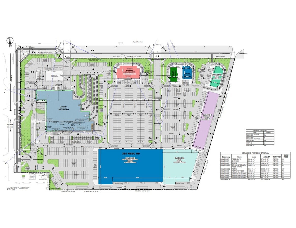 - Développement d'un nouveau centre commercial de 150 000 pieds carrés, circulation automobile élevée