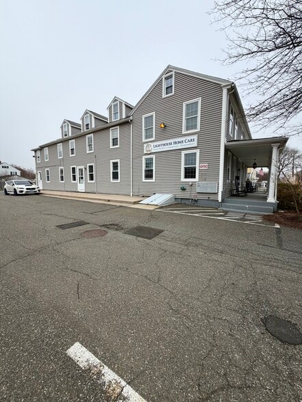 Strategically positioned along Main Street in Old Saybrook, this multi-tenant office property offers flexible suite sizes suited for professional, medical, and service users. The building features front and rear access, with shared kitchen and restroom facilities centrally located for tenant convenience. Recently updated common areas and suites provide a clean, functional environment. Layouts consist primarily of private offices, with select suites offering connectivity for expanded footprints. Some suites benefit from natural light. On-site configuration supports a range of small business users seeking efficient space in a well-located shoreline corridor. Convenient access to I-95 and Route 9 supports regional connectivity.