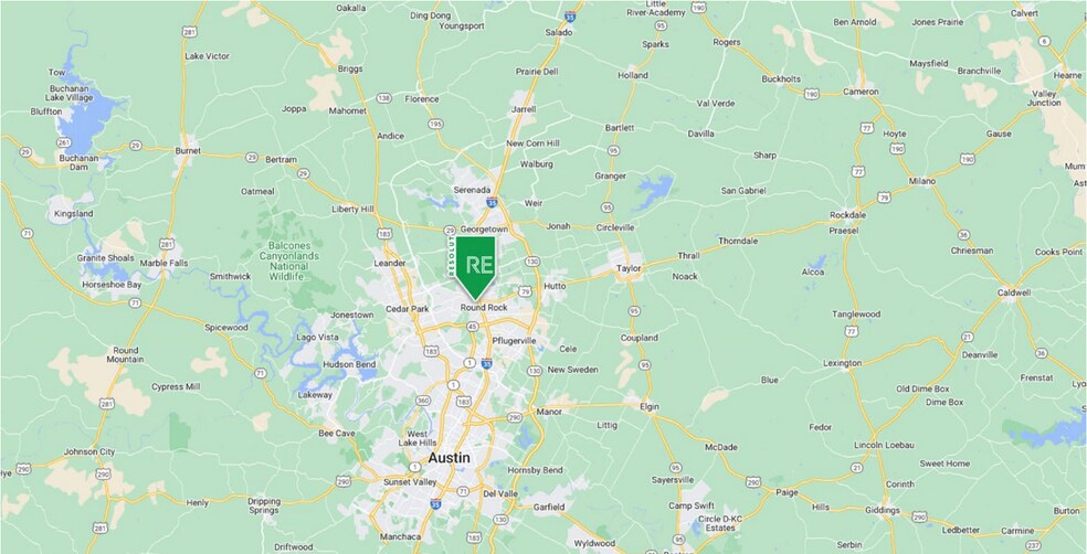 • Situé à l'intersection signalée de l'avenue Round Rock et du chemin N Lake Creek • En face du lycée de Round Rock et à environ 0,25 mile de l'hôpital Round Rock à l'ouest et de l'IH-35 à l'est