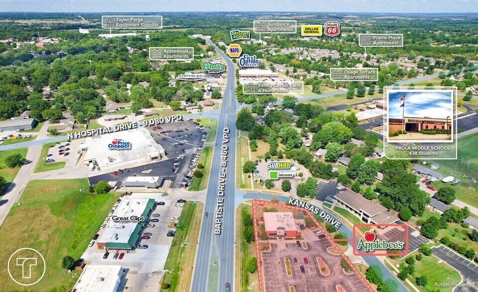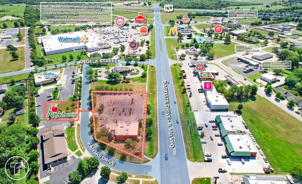 This freestanding restaurant property offers a highly visible and accessible location in Paola, Kansas. Positioned adjacent to a Walmart Supercenter and across from Price Chopper, the site benefits from strong retail synergy and consistent traffic flow. The property sits on 1.24 acres and includes a 3,642 SF building, making it well-suited for a variety of dining concepts or quick-service operations. The location provides excellent connectivity, with close proximity to U.S. Highway 169, ensuring convenient regional access. Surrounding amenities include major retailers, grocery stores, and service providers, creating a robust consumer draw. Nearby educational institutions such as Paola High School, Paola Middle School, and Sunflower Elementary contribute to steady daytime activity, while Paola Hospital and other community services enhance the area’s stability. This property represents a strong opportunity for operators seeking a well-positioned site in a growing market with established traffic drivers and complementary businesses.