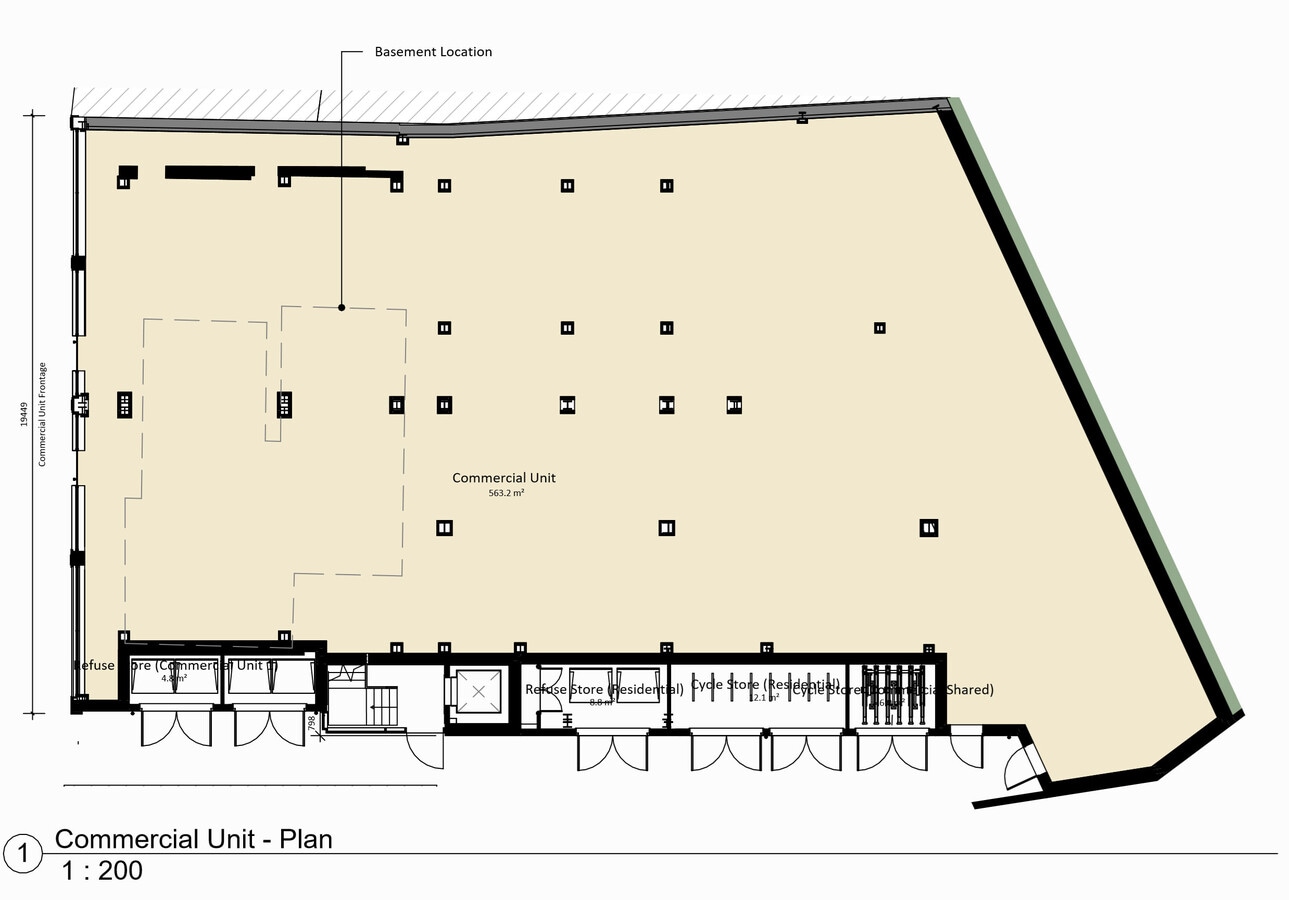 Comprises a ground floor shop and Class E unit within this mixed-use development. The premises is being left in shell condition, ready for a purchaser / tenant to fit out, benefiting from a 60’ Frontage. Lease: A new full repairing and insuring lease to be granted for a term by arrangement subject to upward only rent reviews at 5 yearly intervals if applicable.