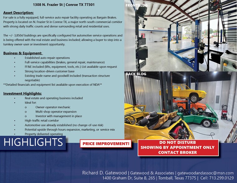 Bargain Brakes 1308 N Frazier St Industriel/Logistique 358 m² À vendre Conroe, TX 77301 1 203 704 € (3 365,34 €/m²)