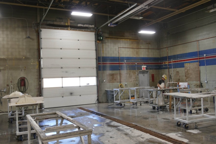 - Shop area includes make-up air plus trench sump with access to the exterior yard.