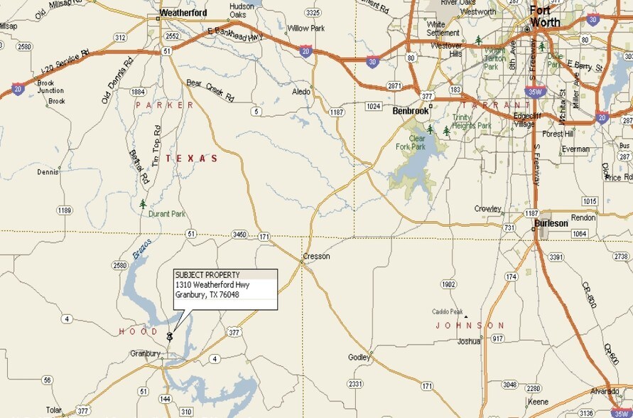 1312 Weatherford Highway 1312 Weatherford Hwy Lot | Terrain commercial | 13,35 ha | À vendre | 862 007 € | Granbury, TX 76048