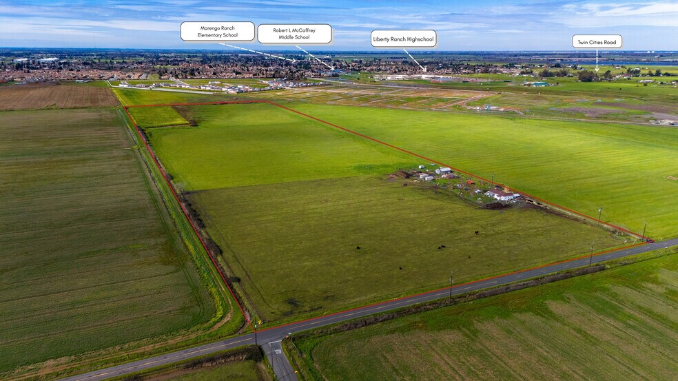 46.31 acres of development land in Galt's most active growth corridor. Located within Galt's Sphere of Influence and aligned with the city's General Plan 2030 growth zones, approximately 42 acres are suitable for rezoning into Low-Density and High-Density residential. Adjacent to the 356-acre Liberty Ranch master-planned community where Meritage Homes launched Phase 1 of 1,440 planned homes in 2025. The General Plan supports both Low and High-Density residential on this site. Existing 3BR/1BA residence (approx. 1,200 SF, built 1951) in as-is condition; value is in the land. An exceptional opportunity for developers, builders, and land investors seeking development-ready acreage in a proven, funded growth corridor in Sacramento County.