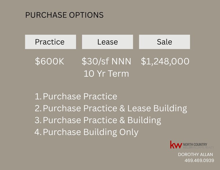 An established dental practice is also available for purchase at this location for $600,000, offering a turnkey operation for owner-users or DSO expansion. Alternatively, the space can be leased by the right tenant