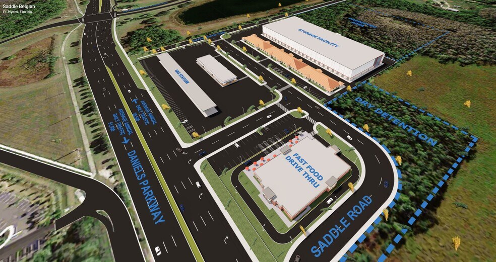 Profitez d'un site prêt à l'emploi bénéficiant d'un accès pratique à l'autoroute et de nombreuses utilisations autorisées dans une communauté aisée au 13201 Saddle Road. Le site comprend un zonage commercial général, qui permet de multiples utilisations, notamment des lave-autos, des stations-service et des magasins de proximité, des églises, des magasins de pièces automobiles, des restaurants, des établissements de restauration rapide, des pharmacies, des relais routiers, des installations d'entreposage en libre-service et des installations de service au volant. La façade considérable du site le long de la promenade Daniels permet une entrée et une sortie approuvées directement à la sortie de la route principale, sur laquelle circulent plus de 90 000 véhicules chaque jour. Ce chiffre continuera d'augmenter parallèlement à une croissance démographique prévue de 16 % d'ici 2027 dans un rayon de huit kilomètres autour du 13201 Saddle Road. Dans cette même fourchette, les acheteurs trouveront une communauté aisée dont le revenu familial moyen est supérieur à 112 000$. En outre, S Ft. Myers/San Carlos est un marché d'investissement très liquide caractérisé par de nombreuses transactions, et le marché a prouvé une fois de plus qu'il ne l'était l'année dernière. Ces liquidités témoignent de l'attrait de la région pour les investisseurs, les nouvelles entreprises dans divers secteurs et les résidents qui souhaitent s'installer dans une région favorable aux affaires. Le 13201 Saddle Road est la destination idéale pour les investisseurs à la recherche d'un site de développement bénéficiant d'un trafic intense et d'une communauté aisée.