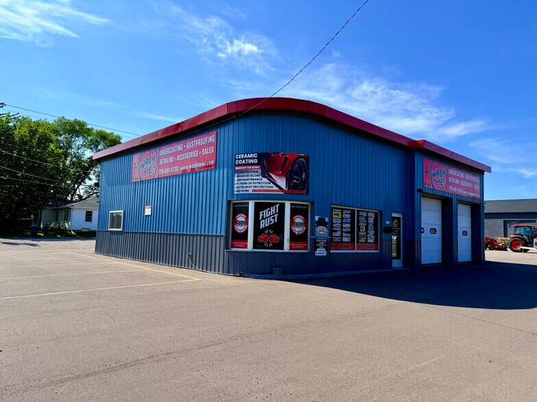 Wash Me Undercoating, Detailing & Accessories has become a highly recommended and well-known business in the Rice Lake area since it was established in 2018. You see their iconic logo in vehicle windows everywhere you go, and they are top of mind when talking about the best vehicle detailing, undercoating, and vehicle accessories in the area. Since moving to its current location in 2022, Wash Me has grown and expanded, offering top quality YEAR-ROUND services and adding a wide range of products. The location itself is one of the best spots in town. Located on South Main Street, the highest trafficked road in town, this 2,790 sq.ft. building undoubtedly gives your business the visibility it needs. The facility has the infrastructure you need to continue the already established business or expand and make it your own. Two 10x10 garage doors open to the main garage and work area with new epoxy floors in 2023. The back garage has a 9.5x9.5 door and contains a two-post vehicle lift rated for up to 10,000 pounds and comes with the sale of the building. Two 80-gallon commercial air compressors purchased in 2022 provide the ability to efficiently run air-powered tools and equipment. Additionally, a 24x20 detached garage allows for even more workspace. Your customers will be comfortable in the updated lounge/showroom in the storefront, which includes a guest bathroom. New heating unit in 2022. New asphalt, roofs of both buildings, and A/C unit in 2023. High efficiency LED lighting throughout. Extensive amount of inventory/equipment included with the sale of the business. The business is busy year-round and booked out 2-3 weeks in the summer months. Wash Me has a great local reputation! A new owner can improve/expand the business however they see fit. Auto Sales, repair, etc. The updated facilities and this fantastic location make this one of the most sought-after commercial properties in Rice Lake. Seize this opportunity and schedule a meeting TODAY!