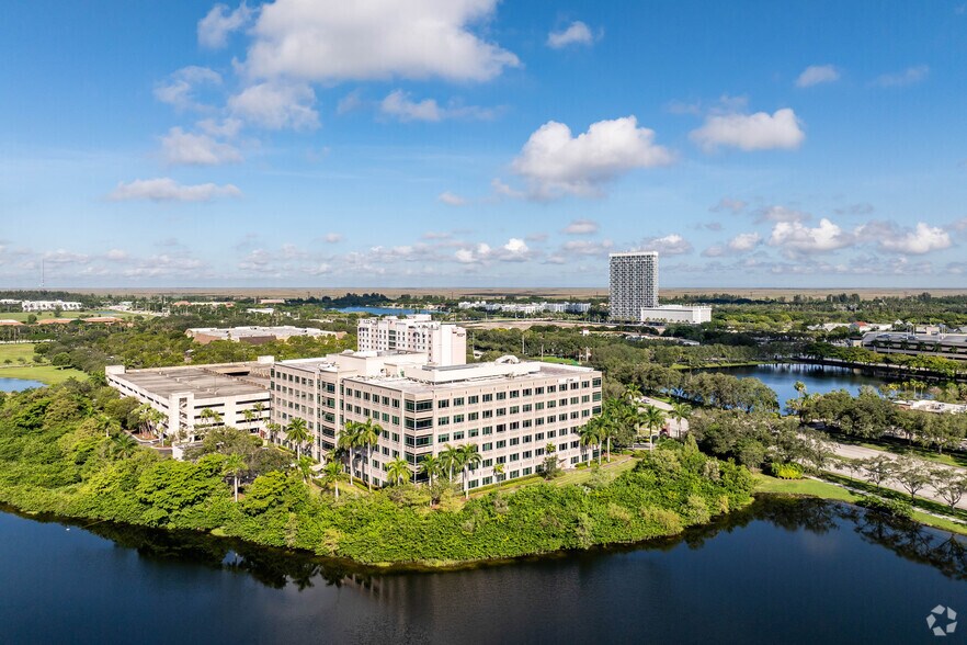 Immeuble de bureaux moderne de six étages avec 239 373 pieds carrés d'espace situé à Sunrise. Comprend une boucle de fibre optique dans tout le bâtiment et offre une vue panoramique sur le lac. Situé en face du centre commercial Sawgrass Mills, à l'angle sud-est de la 136e avenue NW et du boulevard Sunrise.