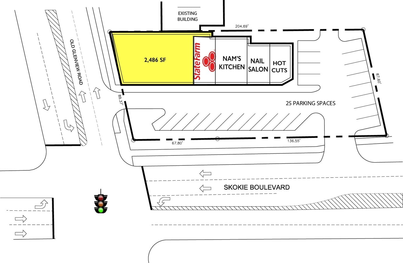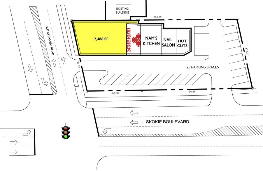Available space is a 2,466 SF end cap unit located at the signalized corner of Skokie Blvd. & Old Glenview Rd. Landlord will be renovating the space to vanilla box condition.