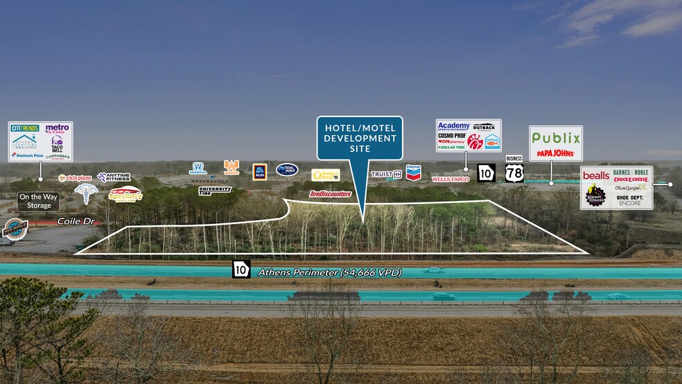 - High-exposure location with ±650 feet of frontage along the Athens Perimeter (Loop 10) carrying approximately 54,666 VPD.