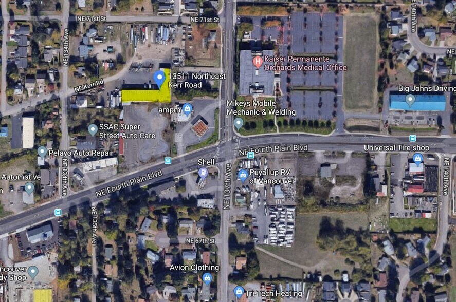 The property at 13511 NE Kerr Road sits within the Kerr Road Business Park in Vancouver, Washington, and offers a straightforward industrial setting with a clean, updated office area. The warehouse provides twenty feet of overall height with eighteen feet of clear space, giving tenants room for typical storage, equipment, or service operations. Three-phase power is available on site, supporting users with heavier electrical needs. Inside the building, the office portion has been refreshed with updated lighting and finishes, creating a comfortable space for day-to-day administrative work. The site allows around-the-clock access, and the business park layout offers convenient on-site parking for employees, visitors, or small service fleets. The property is positioned close to the I-205 and SR-500 interchange, which makes it easy to move around the Vancouver and Portland metro areas. This location benefits users who rely on regional circulation, whether for deliveries, service calls, or general operational efficiency. Overall, the building offers a practical mix of warehouse functionality and improved office space in a location that supports a wide range of industrial and service-oriented uses.