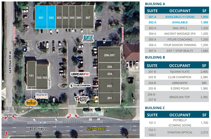-SPACE AVAILABLE: 1,380 SF & 1,800 SF -Direct frontage on Beach Blvd with traffic counts of 52,500 AADT -Strong daytime population of 116,582 within a five-mile radius
