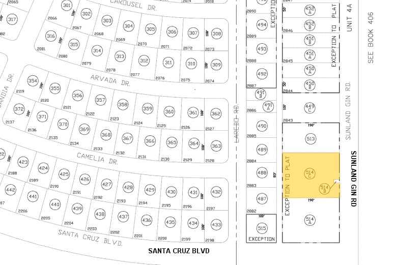 - Rare Dual Frontage - 244' of frontage on Sunland Gin Rd and 108' along Santa Cruz Blvd