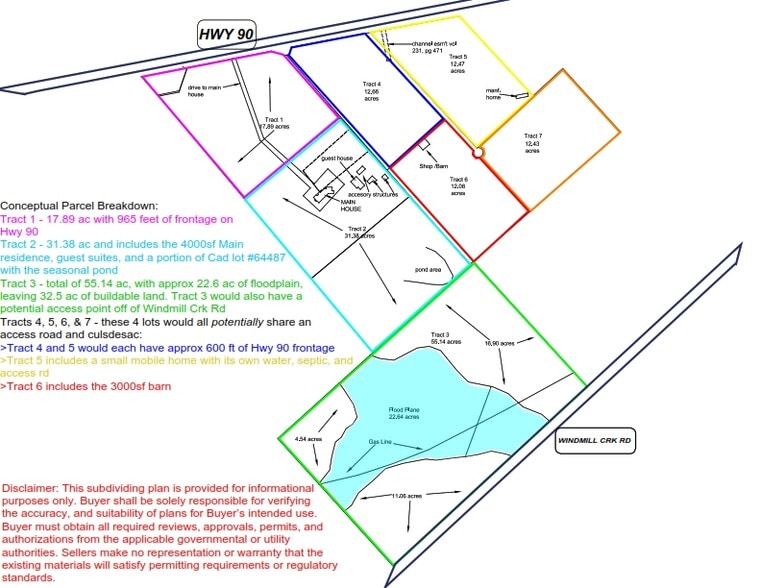 - Conceptual plan for subdividing - 7 tracts ranging from 12 to 30 acres