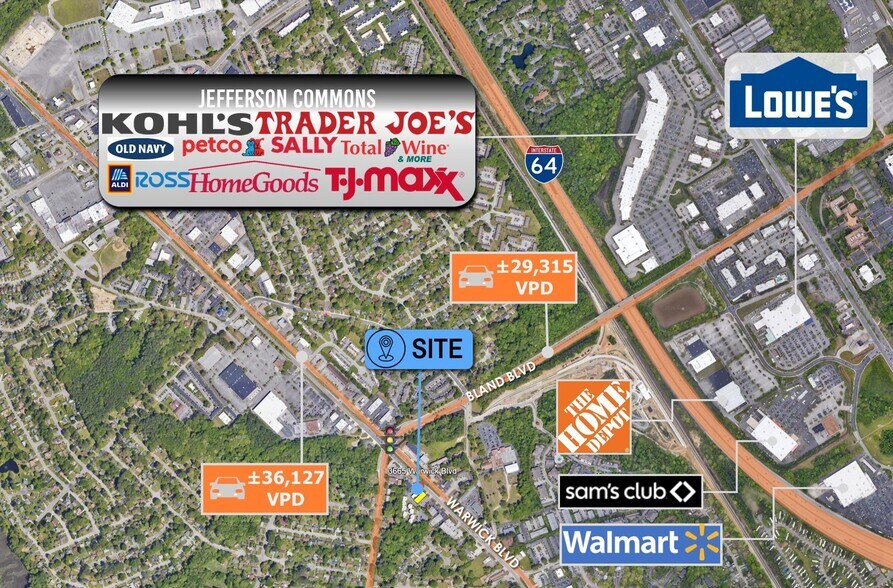 - 36,127 VPD Traffic Counts with Highway Frontage and Visibility on US Hwy 60 (Warwick Blvd) in Strong Commercial Corridor | 2-Mi from I-64 (104K VPD)