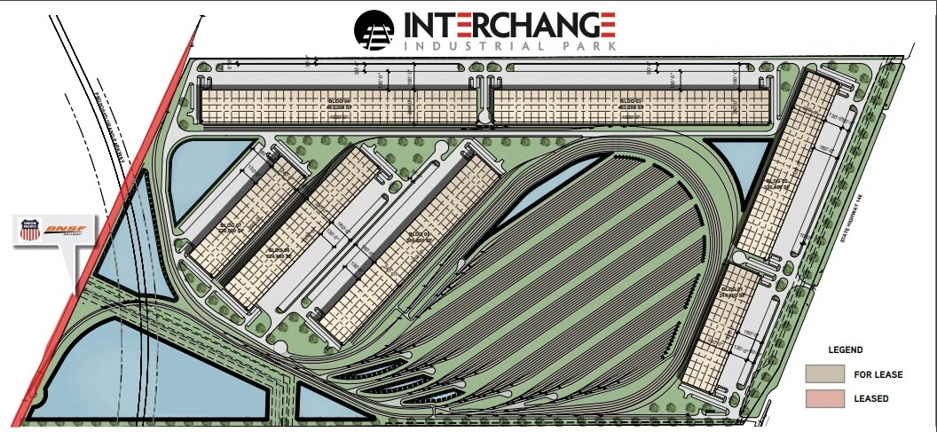 Le parc industriel Interchange accueillera plus de 2 500 wagons avec 4 voies d'échange totalisant 272 places de wagons.