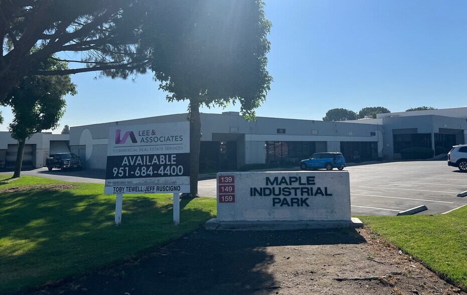 Parc industriel Maple situé à Corona, en Californie. Les unités ont un dégagement minimum de 14 pieds, des portes GL, 100 ampères, 120/208 volts. Zonage M1.