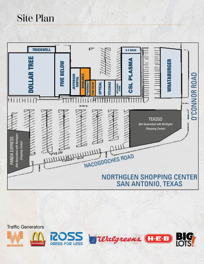 Northglen Shopping Center 13904-14038 Nacogdoches Rd Espace disponible | 130–403 m² | Local commercial | San Antonio, TX 78217
