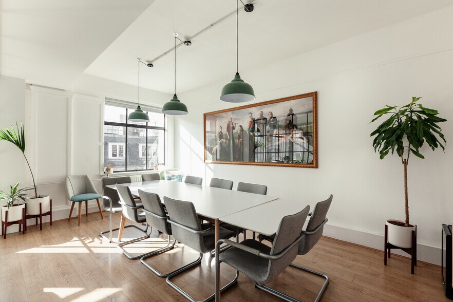 The available second floor delivers an attractive open-plan environment enhanced by partial wood flooring, LED feature lighting, strong natural light and modern furnishings. A dedicated kitchenette, defined lounge area, private meeting room and entry-phone system create a practical and efficient workspace that meets the expectations of businesses seeking immediate functionality. Tenants also benefit from 24-hour access, communal shower facilities and the overall quality associated with The Langham Estate, known for managing some of Fitzrovia’s most prominent commercial buildings.