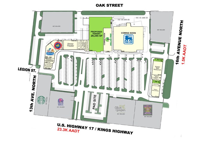 Kings Festival 1403 N Kings Hwy Espace disponible | 111–2 859 m² | Local commercial | Myrtle Beach, SC 29577