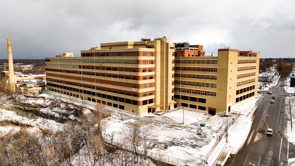Hawkeye at Lower Falls spans a total of 780,915 square feet across eight floors in multiple buildings. The complex was originally built in phases between 1917 and 1943 on an expansive 6.61-acre lot with flexible M-1 zoning. The building’s impressive design is noted as one of the finest examples of factory Art Deco architecture in the world. The property features large floor plates with abundant office, industrial, lab, and research and development space, supporting operational flexibility. It is equipped with an on-site 11kV substation, a full wet sprinkler system, as well as passenger and freight elevators. The facility’s large windows offer sweeping views of the Genesee River’s Lower Falls, creating an inspiring and energizing environment that serves to attract both commercial and residential tenants.
