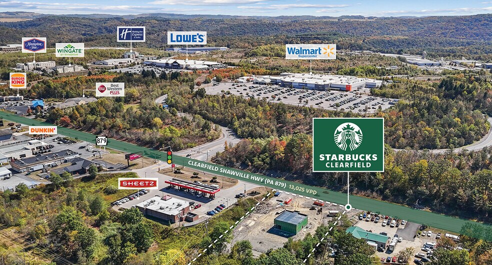 Atlantic Capital Partners is pleased to present for sale the newly constructed Starbucks located along Clearfield Shawville Highway in Clearfield, Pennsylvania. The 2,516 SF store sits on a 1.44-acre parcel and is backed by a brand new 10-year NN lease with Starbucks Corporation, and the store has a projected opening date of Q2 2026. The lease generates $190,000 in annual base rent with scheduled 10% rent escalations in each option period, providing attractive built-in income growth. Strategically positioned along PA Route 879 (13,025 VPD) and directly off I-80 (24,919 VPD), the property benefits from excellent visibility and access, capturing both local and regional traffic. The offering provides investors the opportunity to acquire a high-quality asset featuring new construction, a limited landlord responsibilities (roof & structure only), and durable cash flow secured by a premier national tenant.