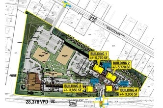 Rare retail opportunity in desirable and affluent community with heavy office population within a market lacking retail inventory • Bedminster Village Square is a premier retail development located at the signalized intersection of Route 206 and Advance Drive • Conveniently positioned near Bedminster Township Municipal Buildings, Bedminster Public School and the Far Hills NJ Transit Train Station • Boasting a high daily traffic count of 28,376 VPD* on Route 206 • Benefiting from a thriving office community, with over 7,900,000 square feet of office space within a five-mile radius, including AT&T’s Corporate Headquarters • Excellent accessibility to major highways including Routes 202, 287, 78 and 22 • Abundant parking and prominent visibility from the road, with the opportunity for a monument sign • Flexible division of spaces will be taken into consideration • Outdoor seating options available for restaurant establishments • Buildings 3 and 4 offer the option of a mezzanine with an outdoor patio
