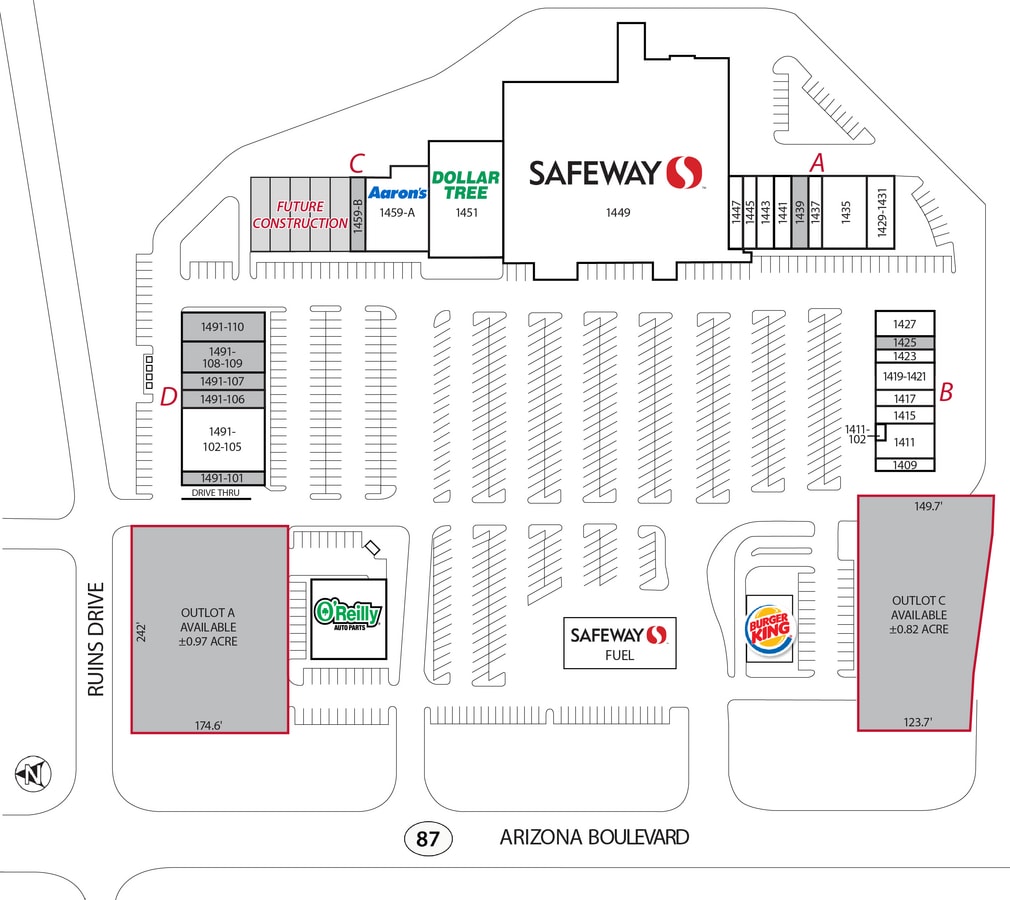 Safeway Plaza 1431 N Arizona Blvd Espace disponible | 102–1 800 m² | Local commercial | Coolidge, AZ 85228