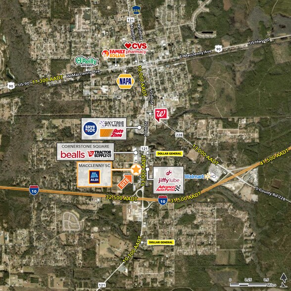 - Traffic Counts: Interstate 10 - 32,500 AADT; SR 121 - 13,000 AADT