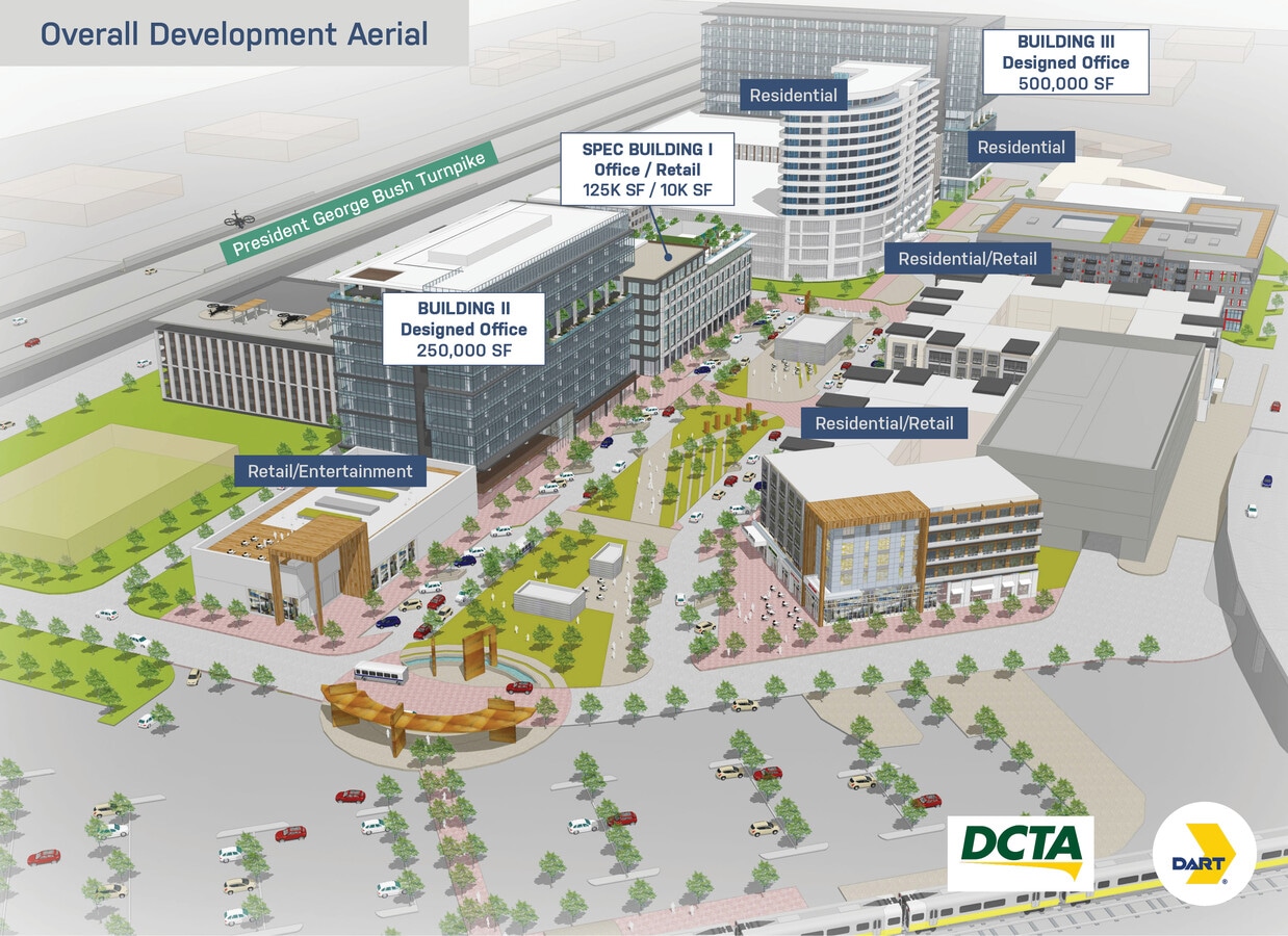 Développée avec soin au cœur de Carrollton, le long de la ligne Dart Green et de la ligne de train DCTA, cette propriété innovante, accessible à pied et à usage mixte incarne la convergence du commerce, de la culture et de la communauté. La gare Trinity Mills abritera des immeubles de bureaux de classe A, des appartements de luxe, des lieux de divertissement, des boutiques et un hôtel sur des places publiques et des promenades qui créeront un nouveau quartier animé de Carrollton. La conception du site se distinguera par ses espaces urbains, ses structures de pavillons et sa place du marché active au centre de la grande pelouse. Cet espace modulaire servira de centre social au nouveau développement, de pelouse pour les loisirs décontractés ou de zone d'événements spéciaux pour les concerts et les marchés publics.