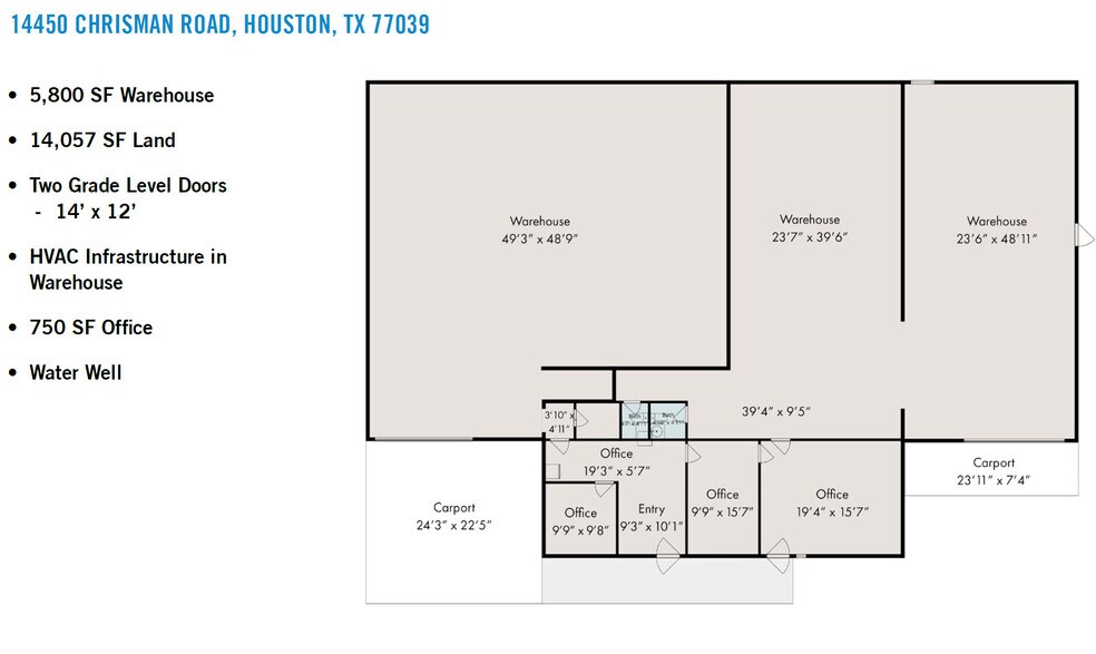 | 14434 Chrisman Rd, Houston, TX 77039 | Industriel/Logistique | 741 m² | 1977 | - |